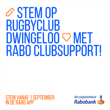 We doen weer mee aan Rabo ClubSupport. Ben je lid van Rabobank Het Drentse Land? Dan kun je tussen 1 en 23 september stemmen op RC Dwingeloo via de Rabo App. Zo help je ons met extra euro’s voor jeugd, materiaal en ons clubhuis—zonder dat het jou iets kost.